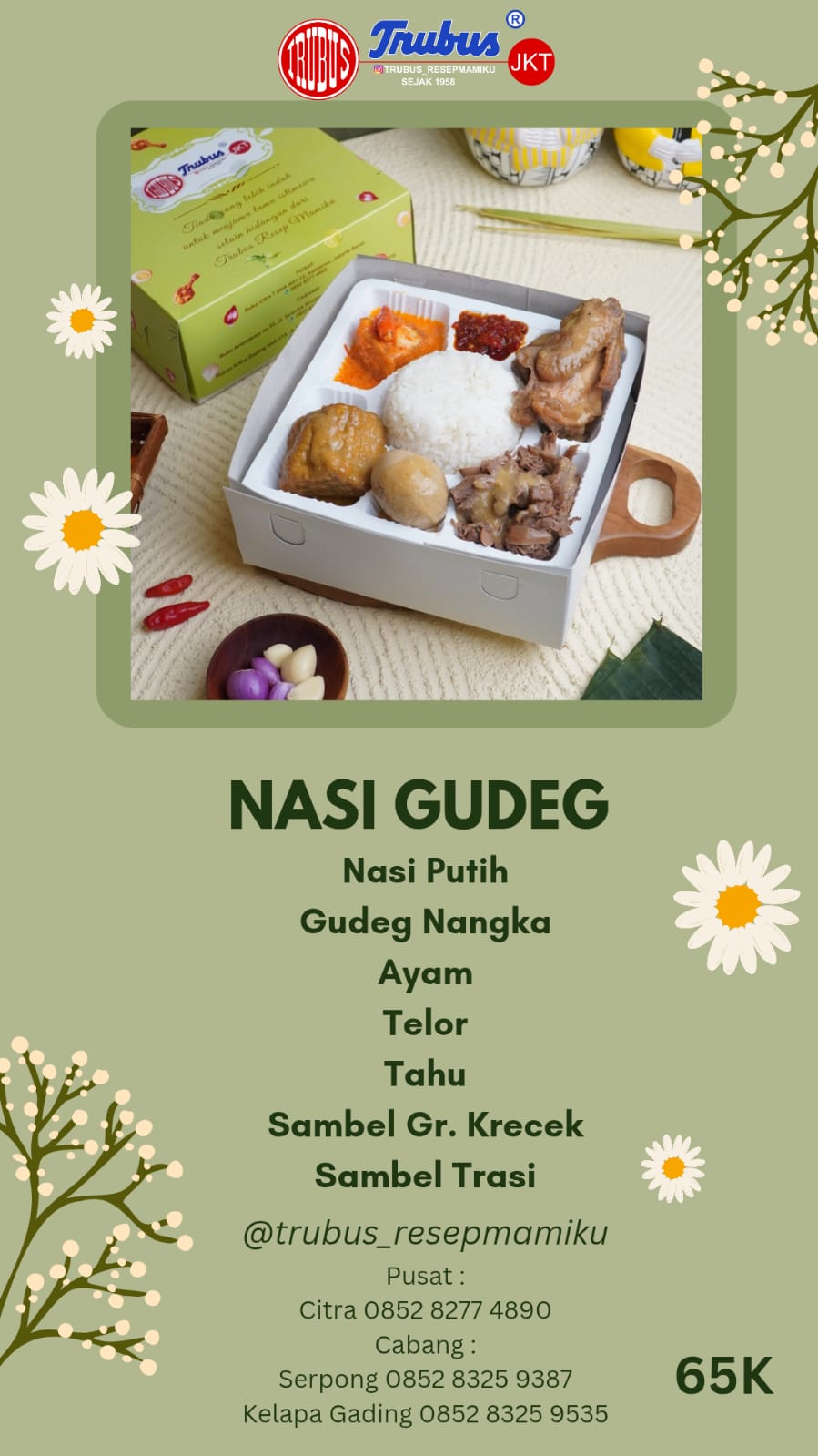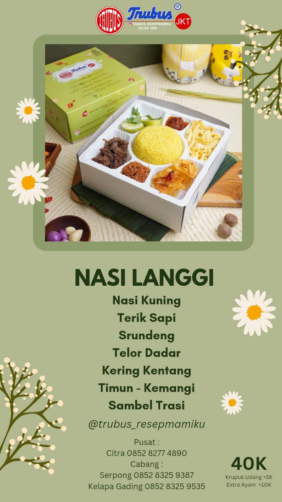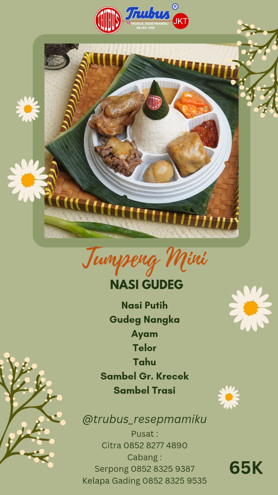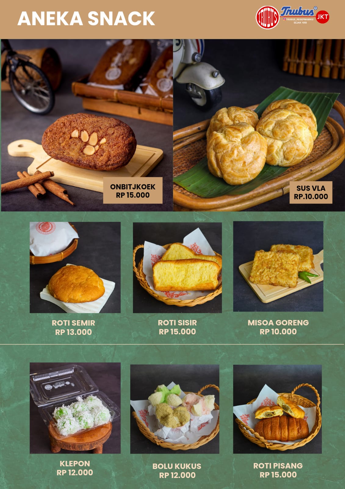 Kisah kami bermula di Yogyakarta pada tahun 1958. Trubus bukan sekadar makanan, tapi sebuah perjalanan waktu. Dulu, aneka kue dan jajan pasar kami digendong keliling kota Jogja oleh Simbok-simbok menggunakan “Tenong”.